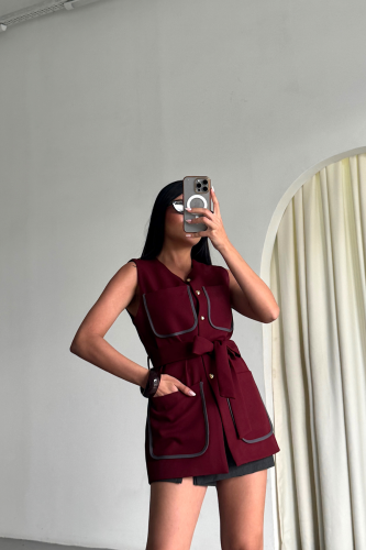 BÜYÜK CEP BİYE DETAYLI YELEK Bordo