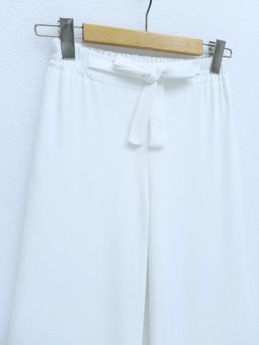 • Duble Kumaş Beli Kuşaklı Bol Paça Pantolon Beyaz