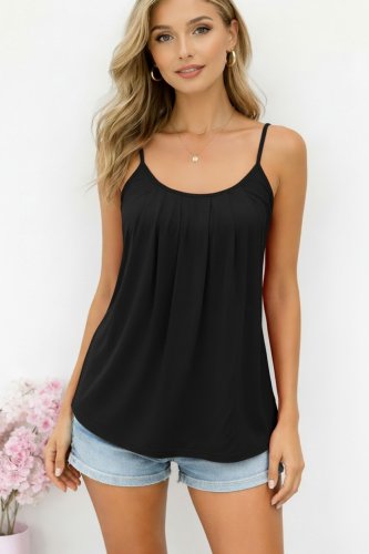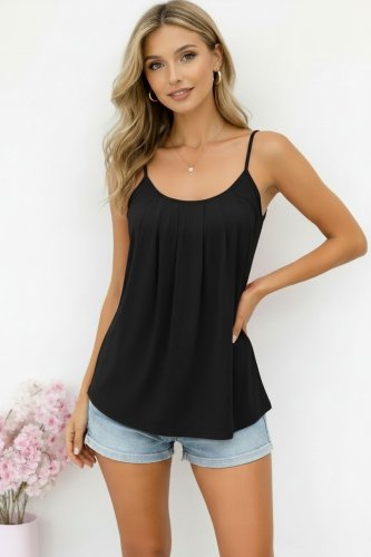 • Kadın ip askılı yuvarlak yakalı pileli uzun viskon bluz