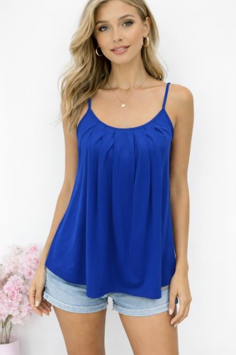Kadın ip askılı yuvarlak yakalı pileli uzun viskon bluz